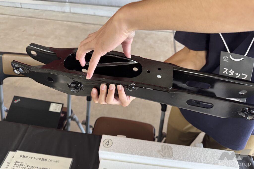 そんなマツダの姿勢はユニークなコンテンツの数々にも現れている。ピットビルの屋上階では、「生産」「開発」「企画・デザイン」といったテーマに基づいて、クルマづくりの基本を学ぶことができるブースが軒を連ねている。その内容は、マツダらしくマニアックだ(笑)。