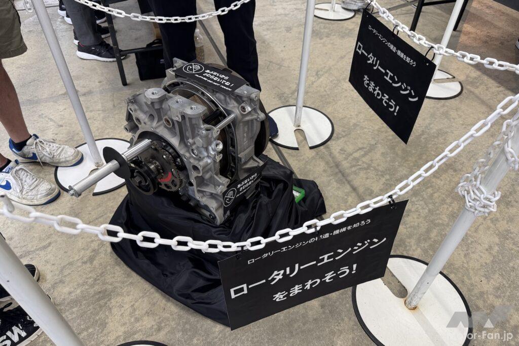 ほかにも8Cと13B、新旧ロータリーエンジンのサイドハウジングの重さ比べ(!)など、マニア心をくすぐりつつ、子どもも楽しめる工夫が凝らされたコンテンツが勢揃いだ。