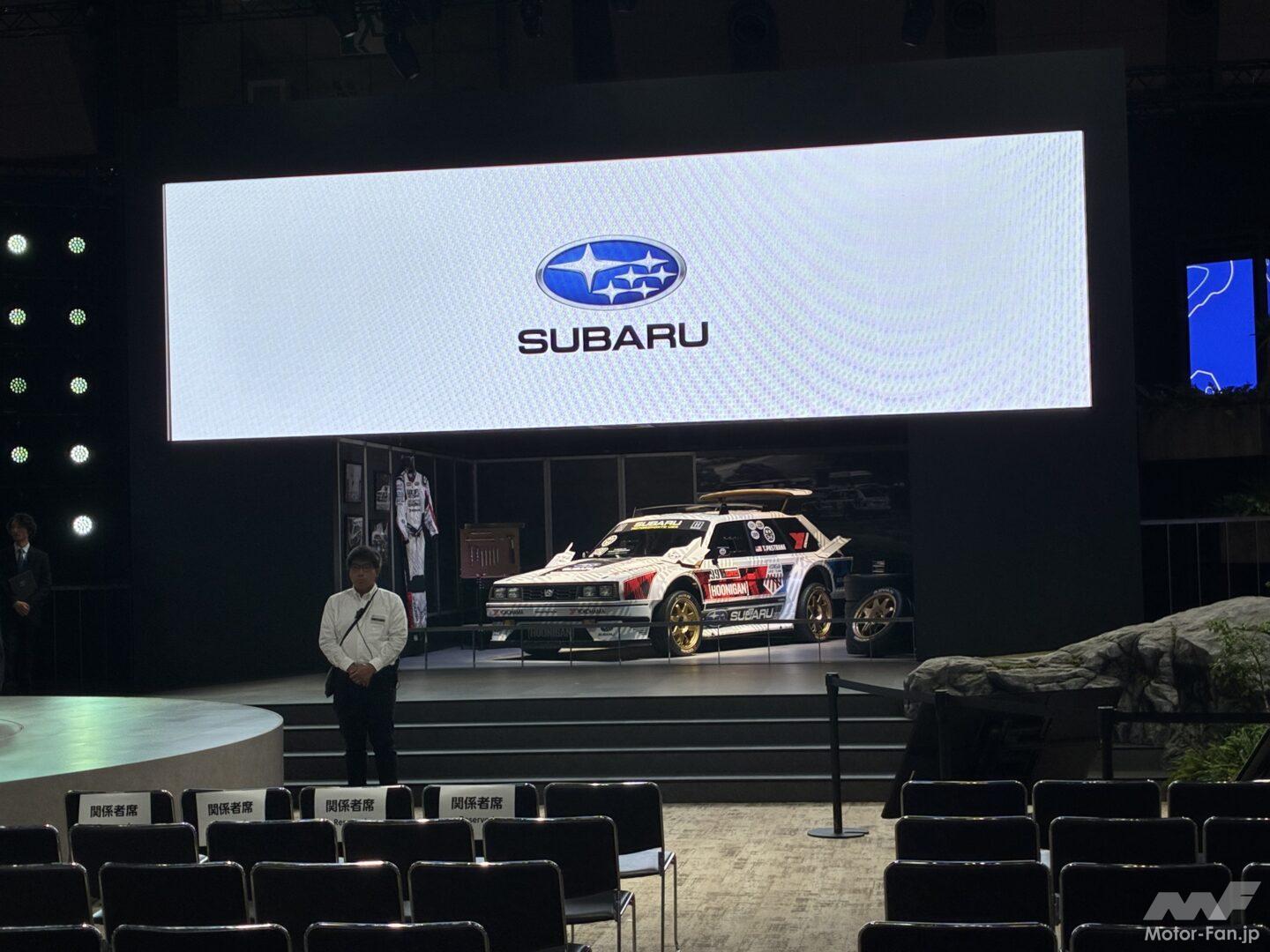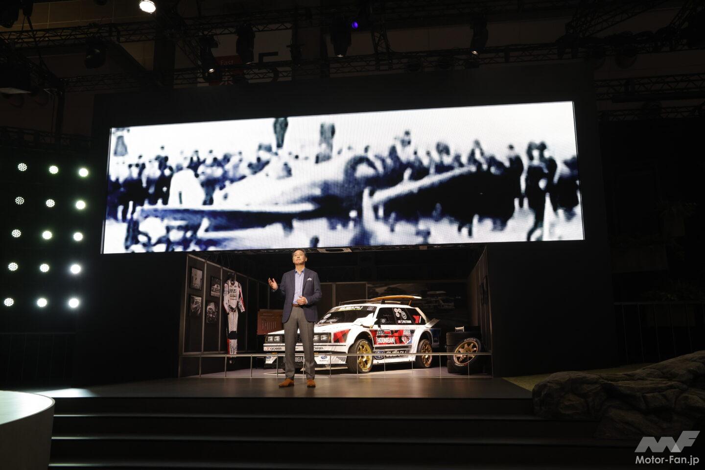 スバルブースのテーマは「ブランドを際立たせる」。航空機メーカー・中島飛行機を原点とするスバルは「安全と愉しさ」を掲げそのブランドを磨き続けてきた。しかしそれはメーカーによる一方的なものではなく、スバルを愛するユーザーと共に成し遂げてきたことだ、とプレスカンファレンスに登壇した大崎 篤代表取締役社長CEOが語っている。