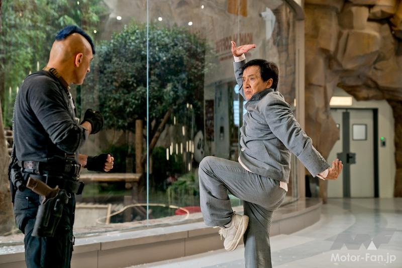 物語の舞台は広大なテーマパークのような動物園なので、移動シーンには様々な車両が登場します。とはいえ公道ではないため、例えばジャッキーたちが乗るのは中国のZhuanling製の4人乗りゴルフカート(ZLQ-GF0504)をパンダ顔に塗装したものや。かたや傭兵団は、こちらも中国のHisonが展開する水陸両用ボートJ5のミリタリー風カスタム車や、ハマーをベースにした東風の軍用軽車両EQ2050などなど、イカツい車も見応えありです。