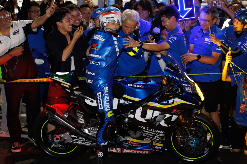 バイクレース 環境にいいけど速い、変態だけど頑張る! 鈴鹿8耐と全日本ロードレースに参戦する「チームスズキCNチャレンジ」始動【写真・2枚目】 左からスズキCNチャレンジ プロジェクトリーダー佐原 伸一氏 / 津田拓也選手 / 二輪事業本部長 常務役員 伊勢敬氏 左からスズキCNチャレンジ プロジェクトリーダー佐原 伸一氏 / 津田拓也選手 / 二輪事業本部長 常務役員 伊勢敬氏 Team SUZUKI CN CHALLENGE GSX-R1000R Team SUZUKI CN CHALLENGE GSX-R1000R 日本製鉄/ヨシムラジャパン 環境配慮型チタンTranTixxii®-Eco材 アールケー・ジャパン カーボンブラックフリーのシール材を使用 鈴鹿8時間耐久ロードレース 第46回大会 鈴鹿8耐決勝 鈴鹿8時間耐久ロードレース 第46回大会 鈴鹿8耐決勝を走行する田拓也選手 鈴鹿8時間耐久ロードレース 第46回大会 鈴鹿8耐決勝 Team SUZUKI CN CHALLENGE GSX-R1000R Team SUZUKI CN CHALLENGE GSX-R1000R サンスター技研 熱処理廃止鉄製ディスク サンスター技研/東海カーボン ローダストパッド トラス Bcomp®(前後フェンダー、サイドカウル、シートカウル) エコ不織布カーボン(燃料タンクカバー) トラス Bcomp®(前後フェンダー、サイドカウル、シートカウル) トラス Bcomp®(前後フェンダー、サイドカウル、シートカウル) エリーパワー 車載LFPバッテリー、ピット電源供給用蓄電池 アールエスタイチ 100%再生生地のチームポロシャツ Team SUZUKI CN CHALLENGE GSX-R1000Rと津田拓也選手 Team SUZUKI CN CHALLENGE GSX-R1000R と佐原 伸一プロジェクトリーダー この画像の記事を読む