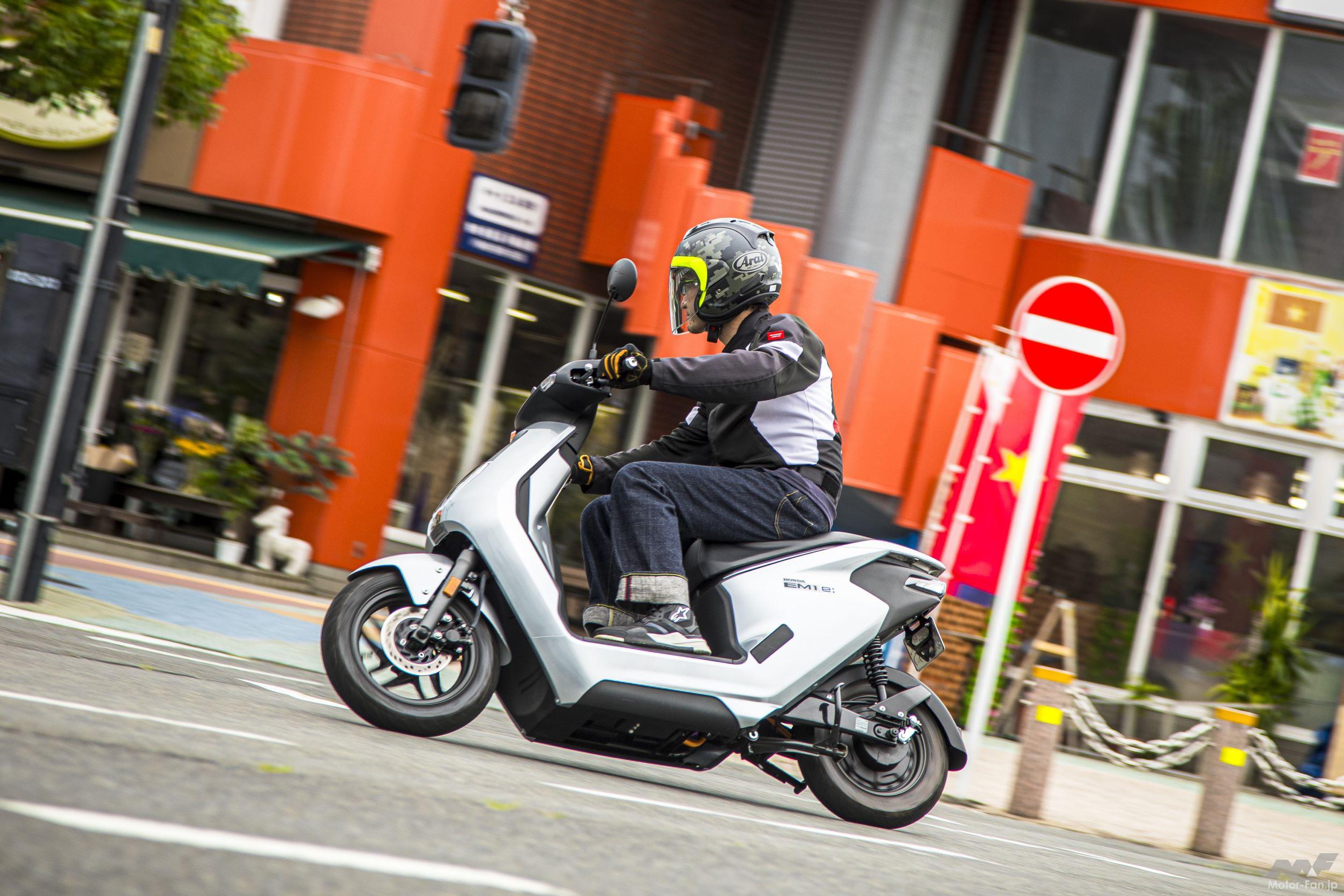 EM1 e:|50ccクラスのホンダの電動スクーターで、街乗りしたりちょい峠を登ってみたり。坂路はやや厳しいが、抜きん出た静粛性に感動。