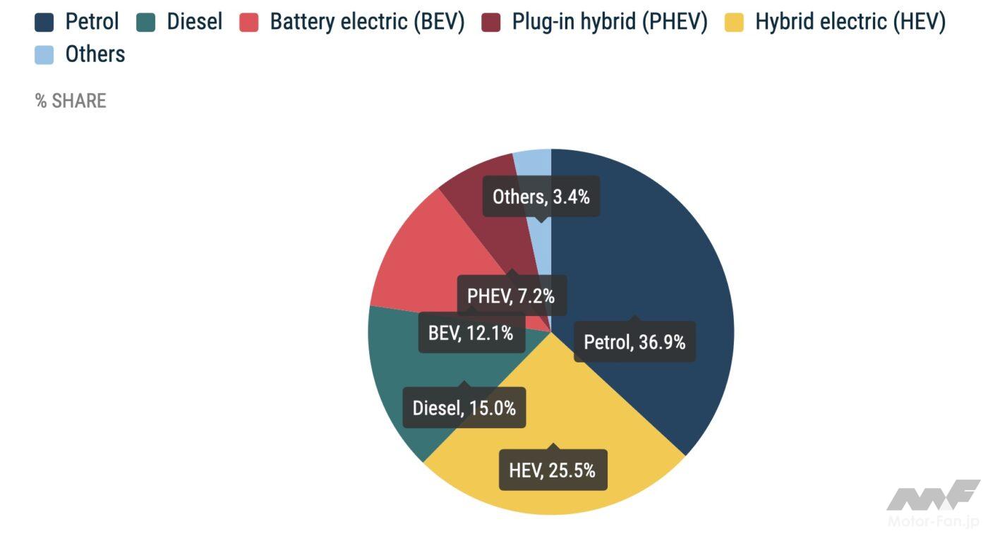 欧州自動車市場はBEV拡大だが、いまだ主流はガソリン+ディーゼルで50%超え