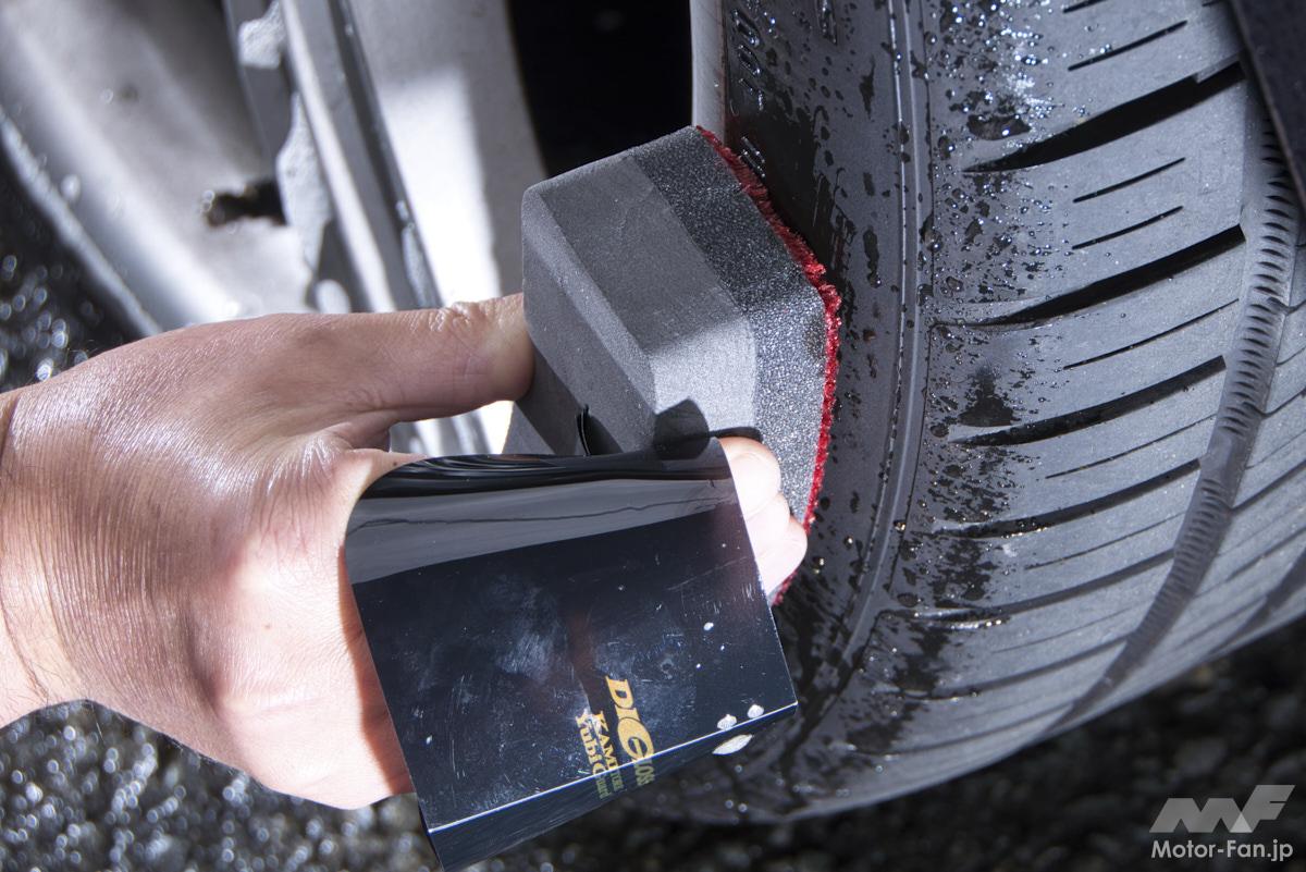 洗車後の仕上げにぜひ! 専用コーティングで、タイヤとホイールの艶感の違いが歴然!