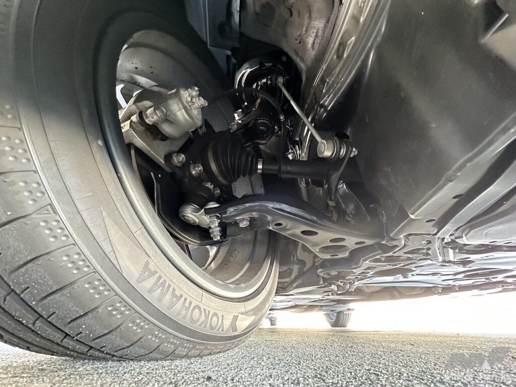 「サスペンション取り付け点のブッシュはゴム特性を変えています。(新型は)加速を良くしているので、それに負けない応答性を作り込むため、タイヤの横力に対して姿勢がすぐに決まるような応答性の高いサスペンションを目指しました。ブッシュの剛性をただ上げるだけではNV(騒音・振動)が悪化するので、ゴム材料の選定に立ち返り、走りとNVの両立を図っています」