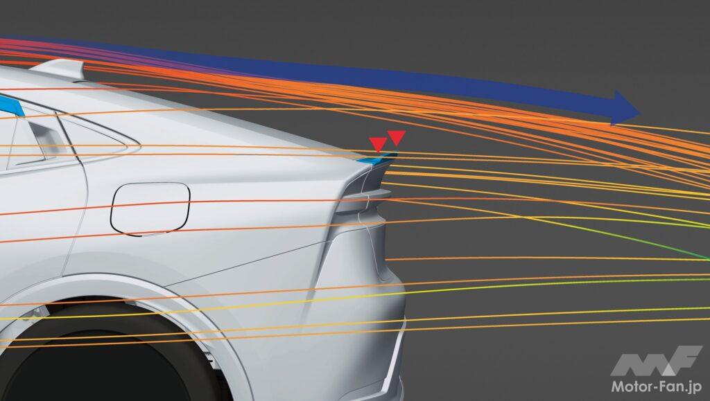車両上面を抜ける風をキックアップさせることでリヤのダウンフォース性能を向上させる。スポイラーの中央部を窪ませた造形はベース車のフードやハイマウントストップランプともリンクし、アグレッシブなリヤビューを演出するだけで無く、ドライバーからの後方視界確保にも配慮している。