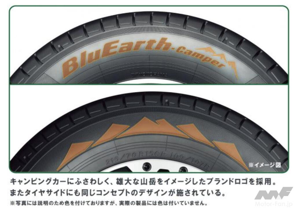 トレッドパターンには実績のある、雨に強い「ブルーアース・バンRY55」の技術・デザインを採用。高硬度のキャップコンパウンドを組み合わせることで、運転時のふらつきの抑制と優れた操縦安定性を実現する。また、タイヤサイドにはキャンピングカーにふさわしく雄大な山岳をモチーフにしたデザインを施し、キャンプやアウトドアをイメージさせる外観に仕上げられた。