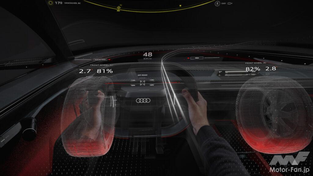 アクティブスフィア・コンセプトはHMIでも新しい地平を切り開いた。新たに採用したシステムは、ブリ的現実とデジタル領域を組み合わせて「Audi dimensions」と呼ぶ新しい世界を創り出している。