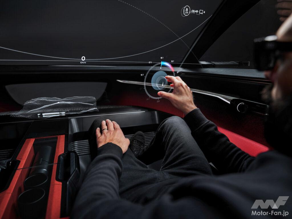 アクティブスフィア・コンセプトは先駆的な世代のテクノロジーを採用した最初のクルマだ。現実世界とデジタルワールドを組み合わせた次元に、インタラクション、つまり相互作用の時間を追加する。前例のない光学精度、最高の解像度とコントラストを備えたシステムは、肉眼では見えないコントロールパネルとディスプレイをヘッドセットで見ることができる。また、ユーザーの視線に従って手を動かすと車両の機能を操作できる。