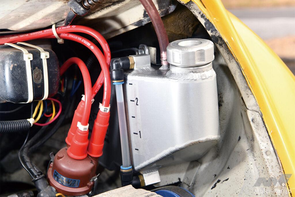 車検整備も自分で行なうオーナー。灯火類の見直しはぜひともやりたい。そこでヘッドライトをLEDに変更すると同時に、前後のウインカーやブレーキランプも総LED化した。これで消費電力を大幅に引き下げられる。けれど純正のダイナモでは、やはり不安。そこで他車から流用したオルタネーターを付けるためステーを自作して、プーリーも変更。