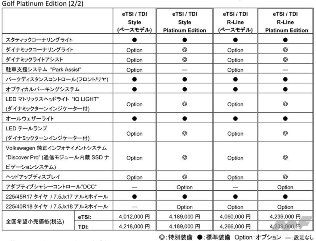 ●VW「ゴルフ・プラチナムエディション」ラインナップ