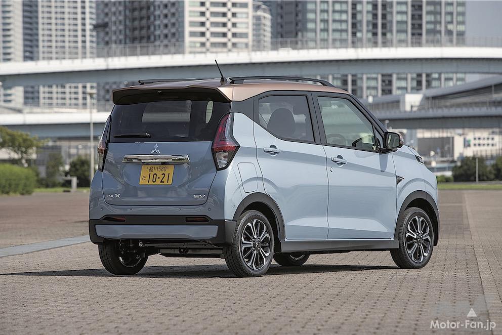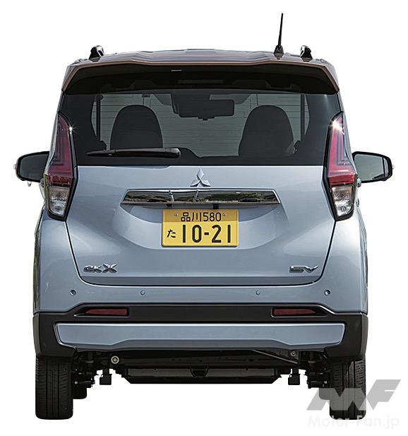 外観は、クロスオーバー軽SUVとして個性的なデザインで一目置かれているガソリンモデルのeKクロスと、大きく変わるところはない。違いといえば、サイドに配されたEVエンブレムと、緻密な新デザインが与えられた15インチアルミホイール(「P」に標準装備)、専用のボディカラーが設定されるくらい。三菱としては、eKクロスシリーズの中のグレードのひとつとしてEVも選べるようにしたかった、というのがその理由だ。