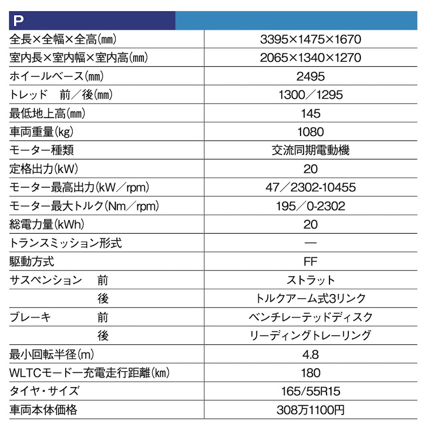 一充電あたりの航続距離は、最大180㎞(WLTCモード)。エアコン効率を最大限アップするなど、続距離と快適性の両立にも気を配っているという。充電時間の目安は、200Vの普通充電(2.9kW)で、満充電まで約8時間。急速充電(30kWh)なら、約40分で80%程度まで充電可能。普段は近所のチョイ乗りメインで、たまに遠出をする使い方なら現実的だろう。V2H対応で、家庭の蓄電池として利用するにもちょうどいいEVとなっている。