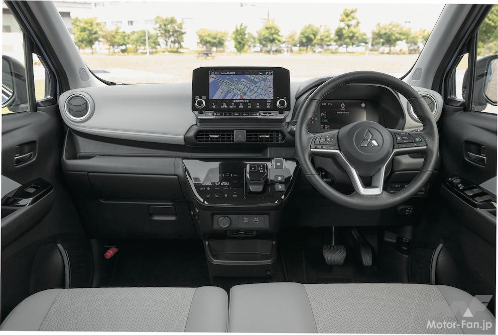 インテリアのセンスも上々。特に上級グレード「P」にオプション設定されているプレミアムインテリアパッケージをつけると、シートやドアインナーなどがライトグレーでコーディネートされ、とても上質で華やかな雰囲気になる。シートの座り心地も良く、後席の足元スペースも広大。収納スペースも豊富で、もともとeKクロスは車検証専用のポケットを助手席ドアに設けていたり、助手席シートアンダートレーを備えていたりと、使いやすさが熟慮されている。