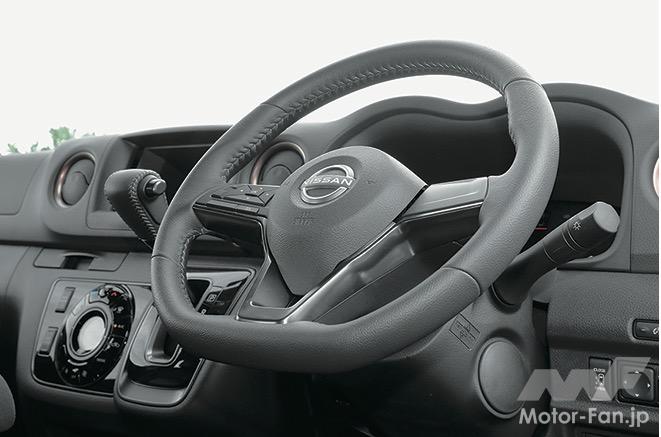 改良前に比べると身体が座面に沈みにくく、足まわりの設定と相まって座り心地が硬くなった印象を受ける。それでも長距離の移動では、改良後のシートが快適だ。開発者は「ワンボックスボディの商用車は、軽商用車と違って、長距離の移動も多い」という。改良後のシートも、キャラバンの使われ方を考えて開発されている。