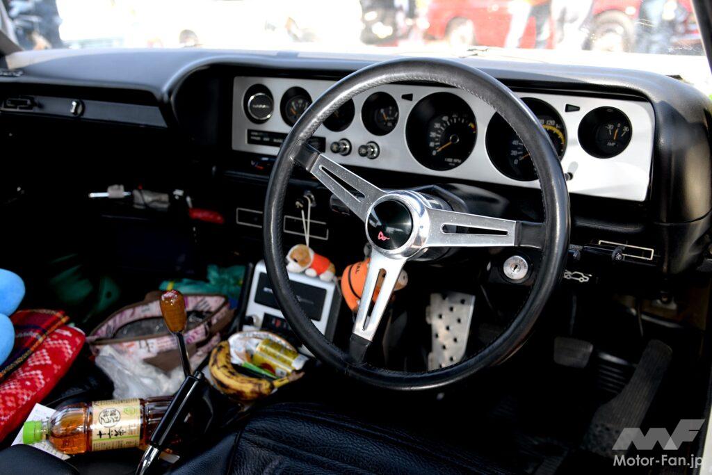 そこでルックス的に劣るものの純正の細いスチールホイールに戻された。ところがこの状態だと乗りやすいうえ、ステアリングフィールもごく自然で路面との感覚を掴みやすい。近年は開催される旧車イベントが増えてきたこともあり、乗りやすさを重視した現在のスタイルで落ち着いた。購入後10年ほど乗る機会が少なかったから、今はその反動でよく乗られるようになったのだろう。