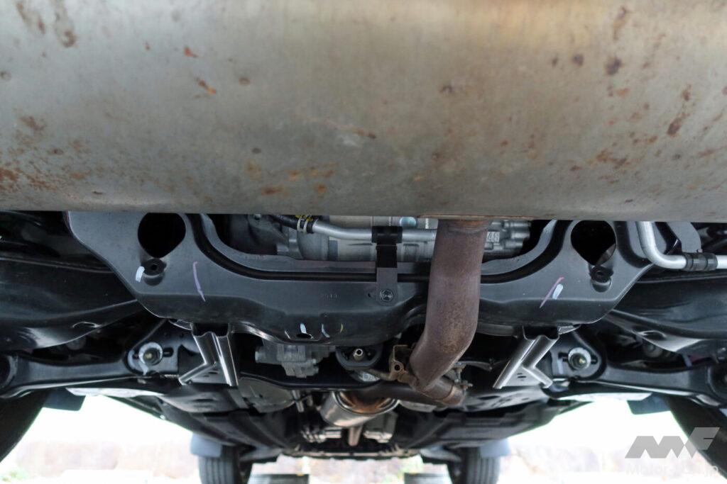 このエンジンの最高出力は106kW/4400-5000rpm、最大トルクは250Nm/2400-4000rpmである。モーター駆動車の真骨頂は静粛性が高いことなので、エンジンはなるべく掛けたくない。バッテリー残量やドライバーの加速要求によってはエンジンを掛けざるを得ない状況があり、そのときはなるべく目立たないようにエンジンをかける。