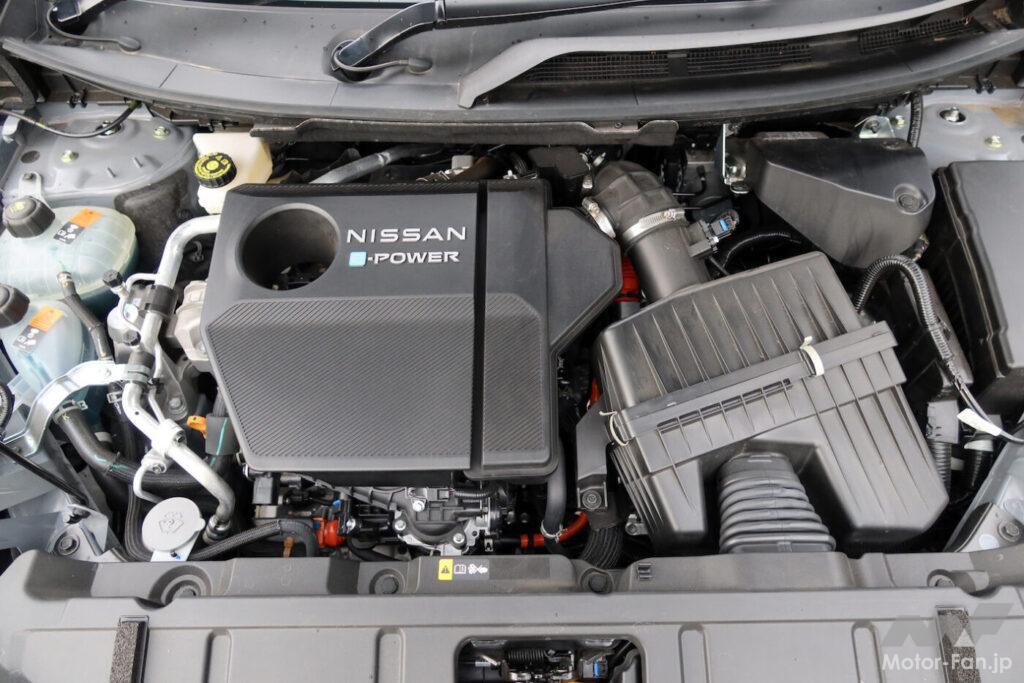 発進時は基本的にEV走行だ(エンジンはかけない)。ある程度車速が上がって、ロードノイズなどの走行音が大きくなると、エンジンをこっそりかける。基本は2000rpmだ(ちなみに、液晶メーターにエンジン回転数を表示するモードは備わっていない)。「燃費の目玉」と称する、エンジンの最も効率のいい(燃費がいい)領域で運転し、発電する。高車速になると大きなパワーが必要なのでエンジン回転を高めるが、従来のe-POWERより1000rpm程度低い4800rpmまでに抑えている。ノイズを大きくしないためで、14.0から8.0まで可変できる可変圧縮比機構を駆使して圧縮比を下げてノッキングを回避し、過給圧を上げてパワーを出す仕組みだ。