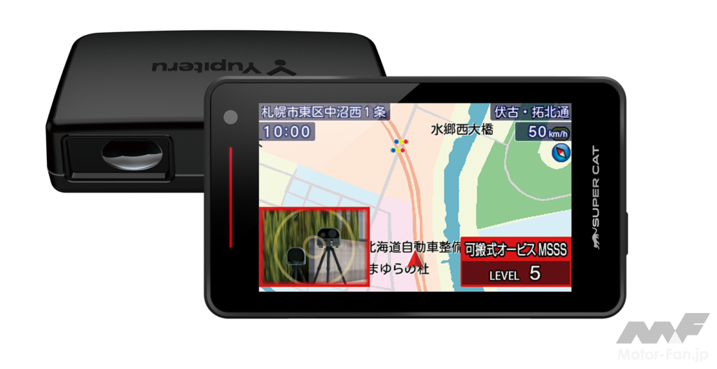 機能面で最大の特徴となるのは、新たな速度違反取締である“MSSS”に業界で初めて対応したこと。“MSSS”は従来のオービスとは異なり、複数の周波数を使用するというレーダータイプの移動式オービスで、今までのレーダー探知機では警報できない場合があるという。