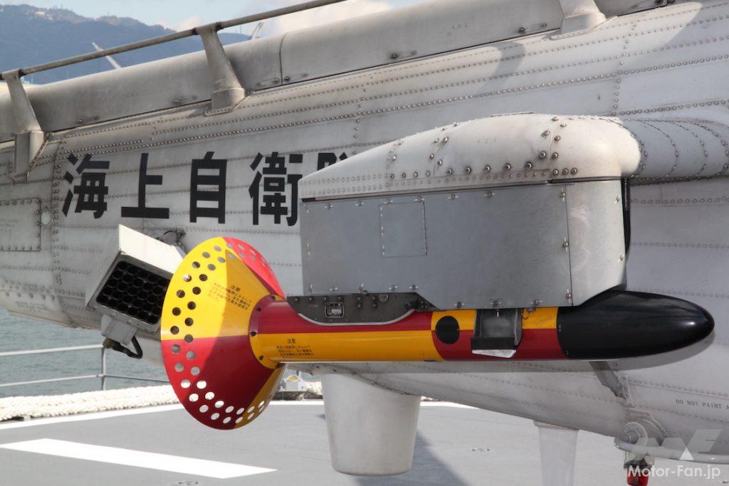 発見した潜水艦に対抗するための武装は対潜魚雷や対潜爆弾、空対艦ミサイルや機関銃まで装備できる。固定化された武装品はないのだが、必要に応じて機外の懸架装置やドア付近などに武装品を取り付けられる。キャビンのスライドドア付近には陸上自衛隊の車載機関銃を流用した7.62㎜機関銃を、さらには機外に高性能対戦車ミサイル「AGM-114MヘルファイアⅡ」も搭載できる。機関銃やミサイルの主目標は不審船などの小型艦艇・船舶だ。