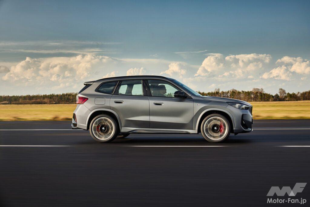新型X1 M35i xDriveの、Mモデル特有のデザイン・キューは、冷却空気の供給とエアロダイナミクス・バランスの面で、極めてスポーティなクルマに求められる技術的要件を達成している。ソリッドなボディの中央に構える大型のキドニー・グリルは、ハードなドライビングでのエンジン、トランスミッション、ブレーキの冷却に貢献し、稼働温度を最適化する。際立つサイドスカート、モデル専用のルーフスポイラー、ディフューザー付きのリアエプロンは、新しいフラッグシップモデルの高性能パフォーマンスを視覚的に訴えている。足回りには、直径19インチのツインスポークのMライトアロイホイールと、20mmワイド化されたスポーツタイヤを装着している。