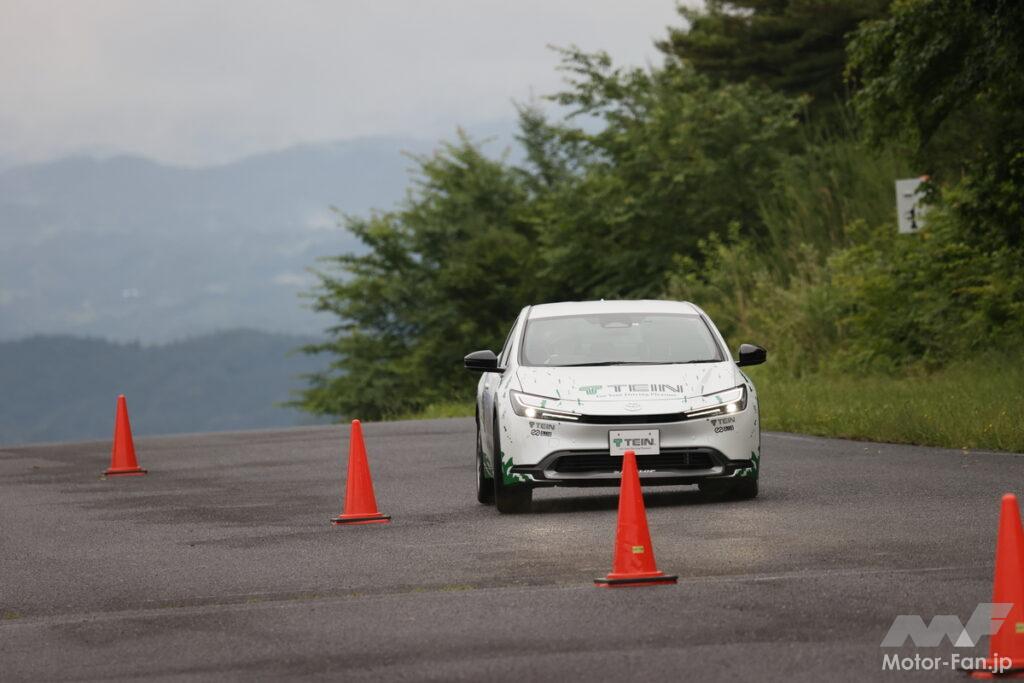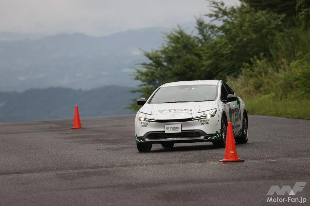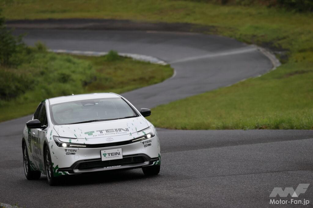 現行プリウスは車高を低くくし、大径タイヤを使うなどしてその走りをかなりスポーティな方向へと磨き上げている。かつテイン開発陣も「かなりベースがよいから、EDFC5の制御がハッキリ示せた」と述べていたが、19インチとはいえ前面投影面積重視となる195幅のタイヤを履いて、サーキットをストレスなく走ることができるとは思ってもみなかった。