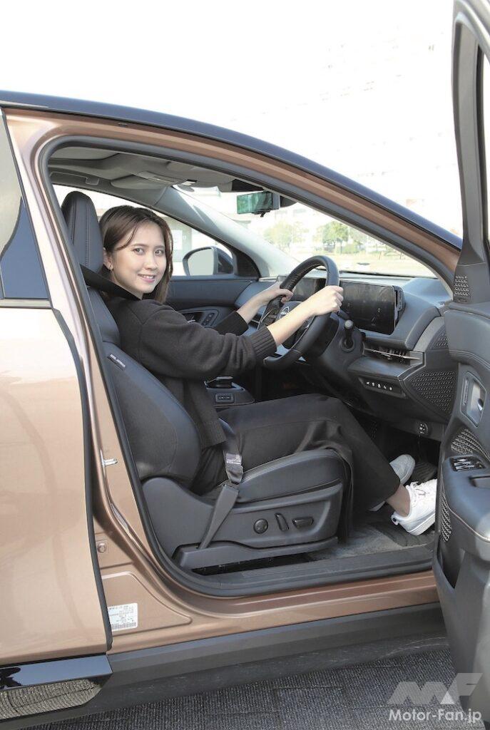 そして4WDモデルは四輪制御技術「e-4ORCE」を搭載、路面を選ばず安心して力強い走りを楽しむことができる。モーターと内燃機を比べると、モーターの方がさまざまな制御が5倍ほど素早くできるとよく言われるが、ラインナップの中でいちばんパワフルなことに加え、前後ふたつのモーターを緻密に制御することで、意のままの走りとスポーツカーに匹敵する加速性能を実現している。