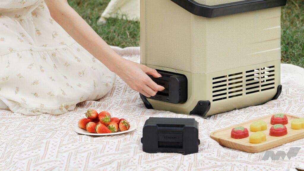 多彩な給電方式に対応するのも魅力。AC家庭用電源やDC車載用電源で稼働が可能なほか、別売りの専用バッテリーやソーラーパネルを使えばコードレスで稼働させることもできる。電源が確保できないキャンプ場や砂浜でもアクティブに使用することが可能だ。