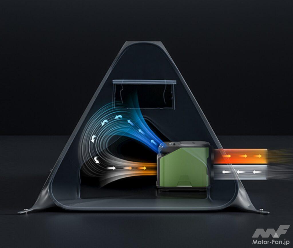 さらにPA600では外気の導入と排気を別系統に分けたデュアル換気システムを採用。テントや車内など密閉された空間で使用する際は、ダクトを追加して熱気を外に排出することで、効率よく冷やすことができる。