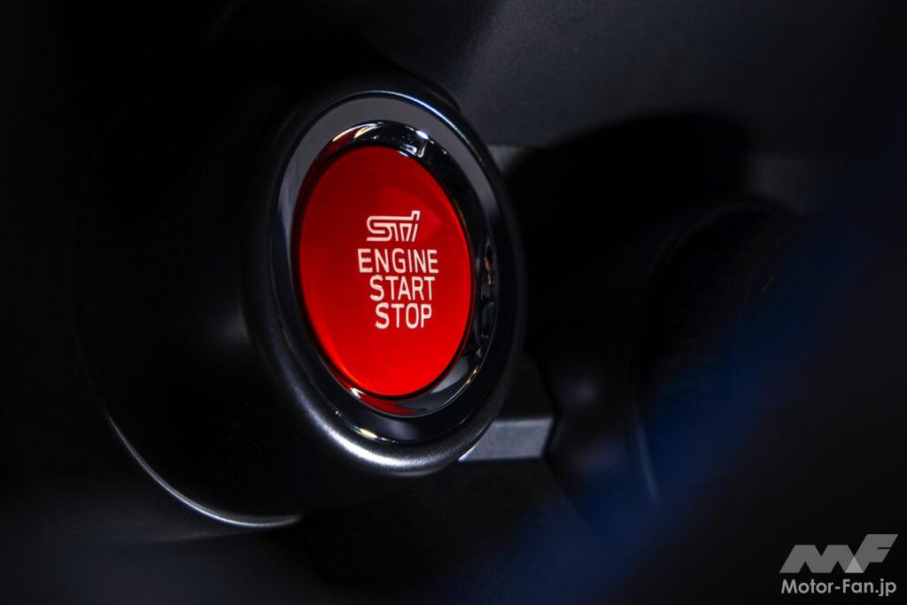 赤いスターターボタンとカスタマイズ可能な7インチデジタルメータークラスターには、STIのアイコニックなロゴが配され、tS専用レッドのアクセントが加えられている。