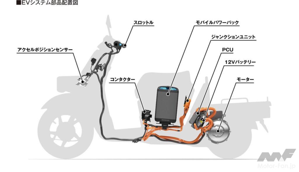 だ。バッテリーは、ホンダが誇るMPP e:(モバイル・パワーパック e:)を2個使う。48VのMPP e:を直列に2個繋ぐから電圧は96Vとなる。
