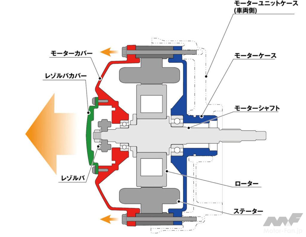 「電動だから無音」かというと、今回の4kW電動推進機のプロトタイプは、エンジンをモーター&PCUに入れ替えた構造を採るため、それ以降のドライブシャフト&ギヤトレーンは変わらない。したがって、ギヤノイズはある。といっても、気にはならないレベルだが。