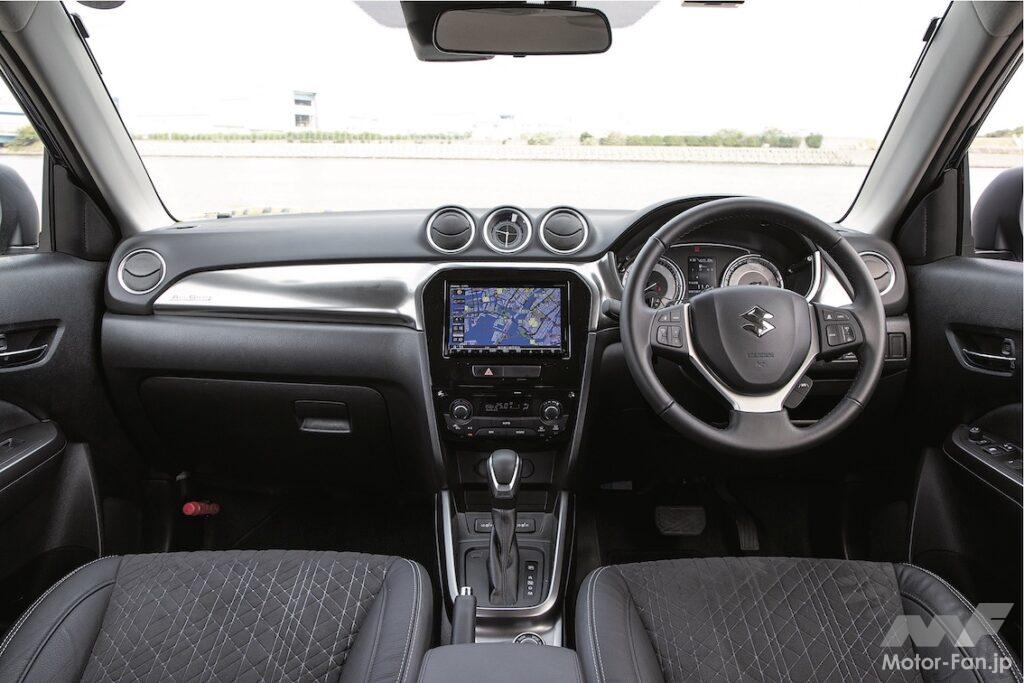 トランスミッションは1組のクラッチを使う有段式6速AGS(オートギヤシフト)だ。このタイプのATは、欧州製のコンパクトカーに多く、変速に若干の時間を要するから加速がギクシャクしやすい。その点でスズキの制御では、エンジンの駆動力が途切れる変速時に、モーターの駆動力を高める。この効果で、以前からギクシャク感を抑えた変速を特徴としてきた。フルハイブリッドのエスクードでは、この制御がさらに綿密になり、2組のクラッチを使う有段ATに近付けている。フル加速時を除くと違和感はない。