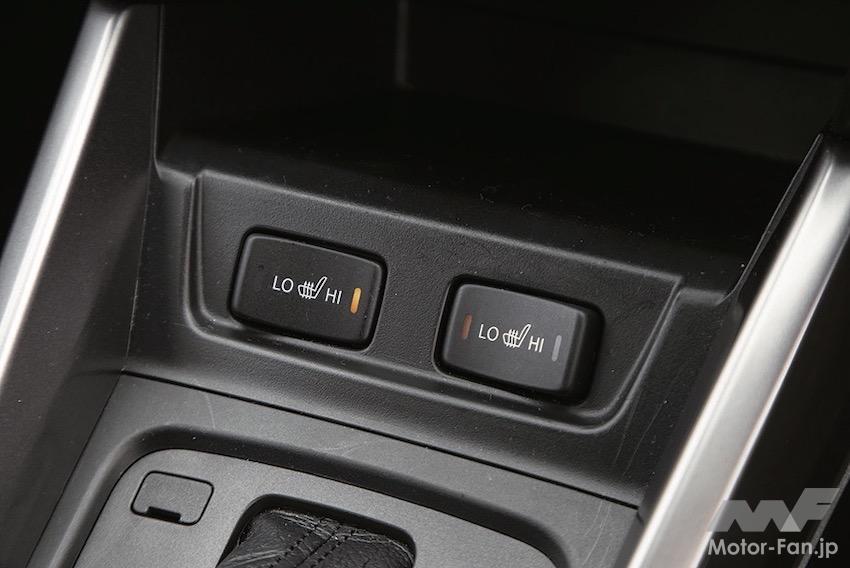 峠道などを走ると、高重心のSUVとしては、鈍さを感じさせずによく曲がる。車両重量も4WDを搭載して1320㎏だから、フルハイブリッドでは軽い部類に入り、軽快な運転感覚が特徴だ。インパネ周辺の質感は、コンパクトSUVとして不満はない。ATレバーは、フルハイブリッドながら前後方向にスライドさせる一般的な形状で、操作感覚も馴染みやすい。