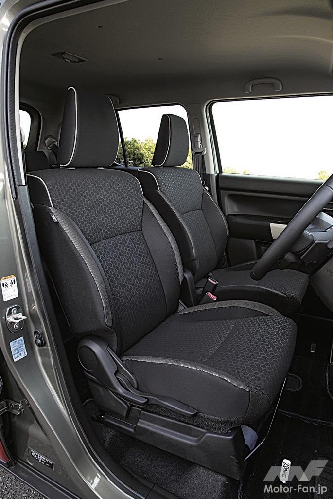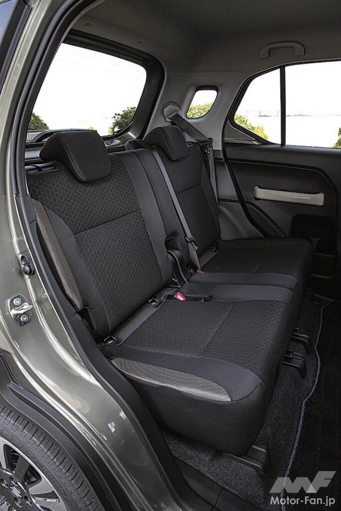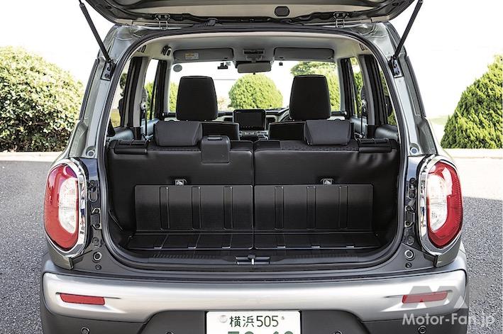 アウトドアでも大活躍してくれるクロスビーのシートは撥水加工が施され、荷室はハード樹脂素材の防汚タイプが基本。荷室は幅方向がクラス最大級の1305㎜もあり、後席格納時のフラット度も優秀。樹脂部分はかえってキズは目立つが、アレンジ性、使い勝手はなかなかだ。そんなクロスビーの走行性能は、特に操縦性や乗り心地はソリオなどと比べるとやや古さが目立つものの、むしろクロカンらしさあふれるクラシックな乗り味とも言えそうだ。