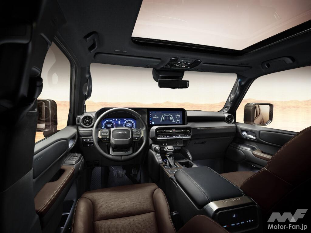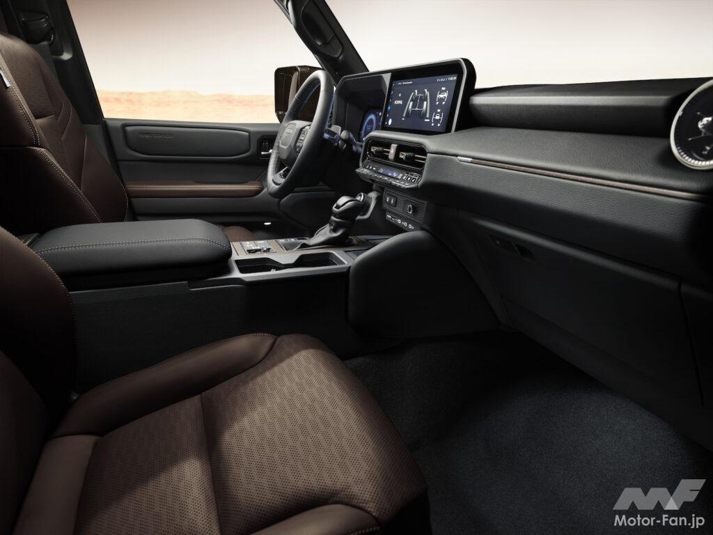 初回先行販売分は限定3000台の丸形ヘッドライト、2種類の2トーン外装をもつ「ファーストエディション」だ。ファーストエディションのパワートレーンは、2.8L直4ディーゼルターボ+8ATになる。欧州には「PRADO(プラド)」という名前の付いたグレードが存在する。