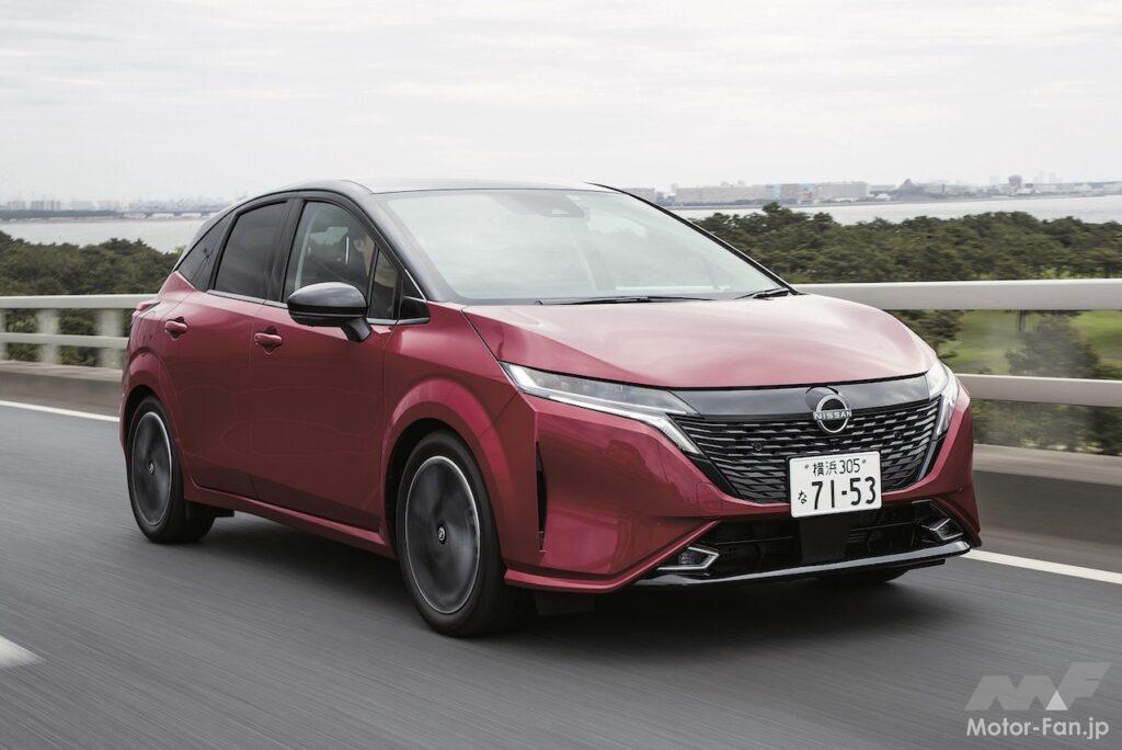 100%電動駆動のe-POWERを武器とした日産のコンパクトカーがノート、そしてその上級モデルが、5ナンバーサイズのノートに対して内外装の上級・上質化に加え、全幅1735㎜となるノート初の3ナンバーボディ、およびノート比+20㎜のワイドトレッドを採用したノートオーラだ。