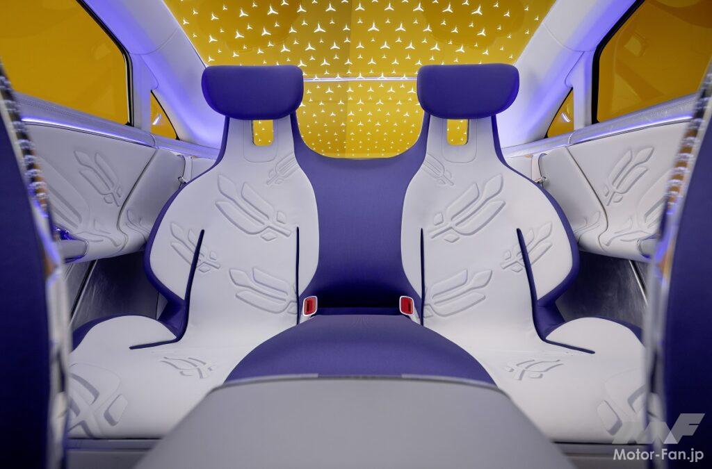 自然の原理を応用した、受賞歴のあるこのデジタルエンジニアリング手法は、材料の使用を最適化することで資源の節約にも貢献している。リアアクスルコンソール、バッテリーコンソール、サスペンションコンポーネントなど、MMAプラットフォームの多くのコンポーネントがこれらの技術を使用して最適化されている。コンセプトCLAクラスのフロアマットは竹繊維で織られており、ドアポケットはバイオテクノロジーベースの高強度で耐久性のあるシルクのような生地で縁取られている。シートはサステナブルな手法で生産および加工された革で張り付けられている。