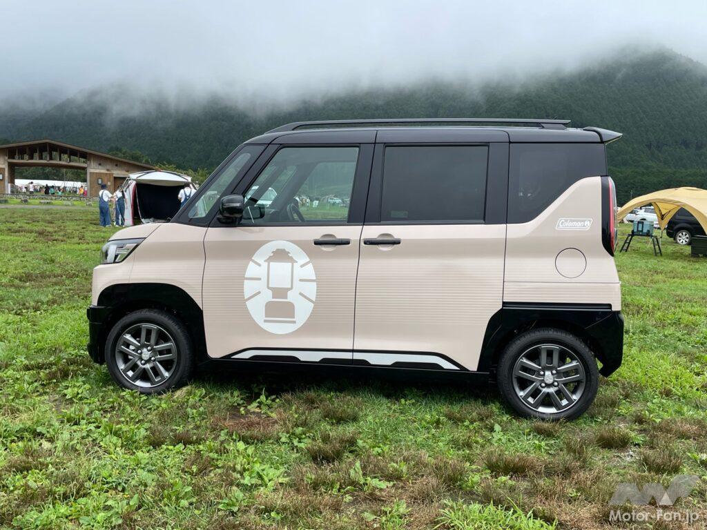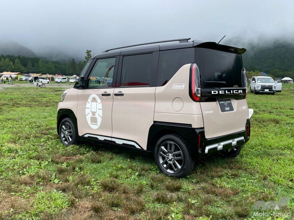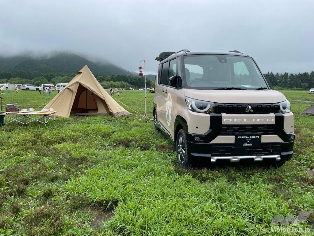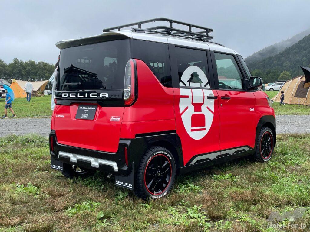 三菱スターキャンプの会場内には様々な車両が展示されていたが、9月7日に発表されたばかりの「デリカミニ×Colemanコラボラッピング」も展示されたいた。