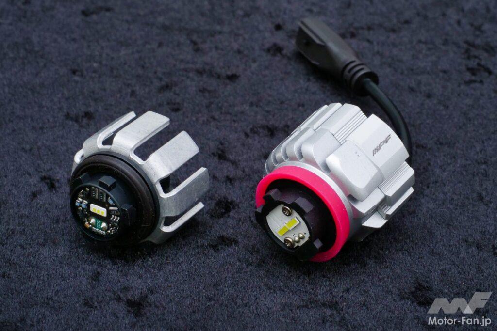 その違いは写真をご覧いただくとして、単純に明るいだけでなくカットオフラインもしっかり出ているので車検も安心。なおかつ耐久性にすぐれており末長く使えると、まさにいいこと尽くし。買っておいて間違いのない純正LEDフォグ交換用バルブといえる。
