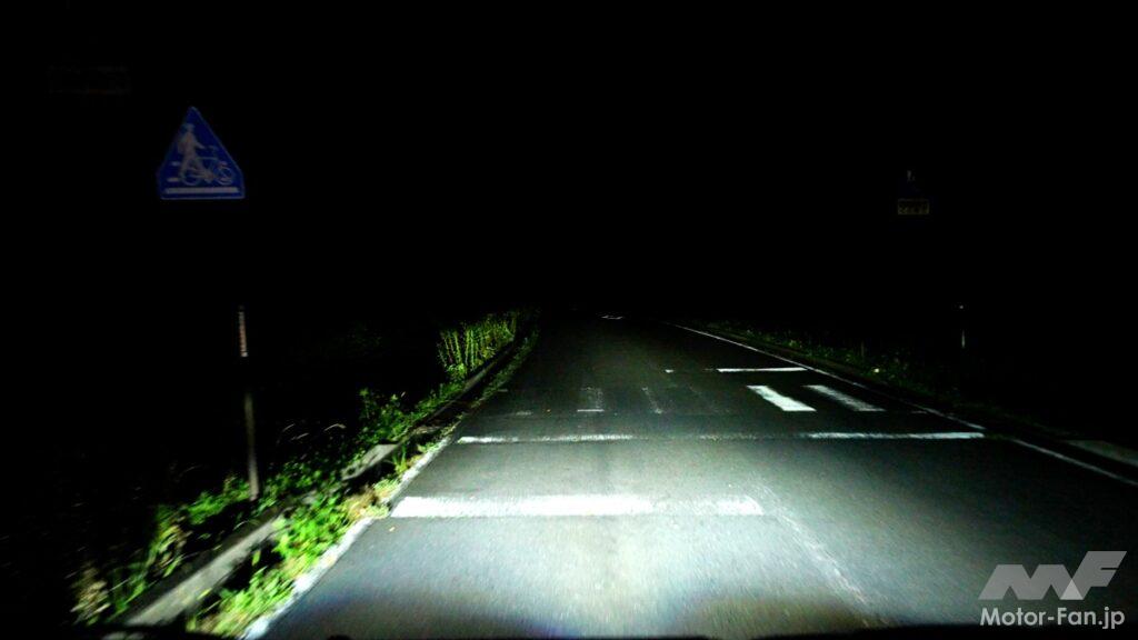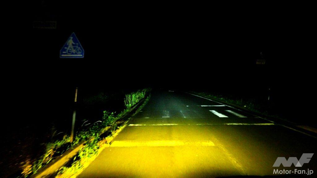 今回は純正LEDフォグとIPFのLEDフォグランプバルブXⅢ L1B 6000K/2600Kとの明るさの違いを、チェックしてみた。真っ暗闇のなか、同条件で見え方はどれほど変わるものなのか? 結論から言ってしまえば、あまりの違いに驚きを隠せなかった。