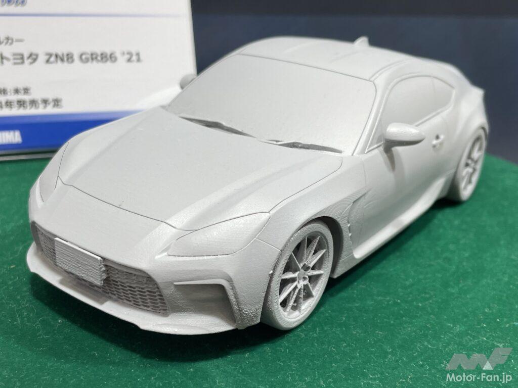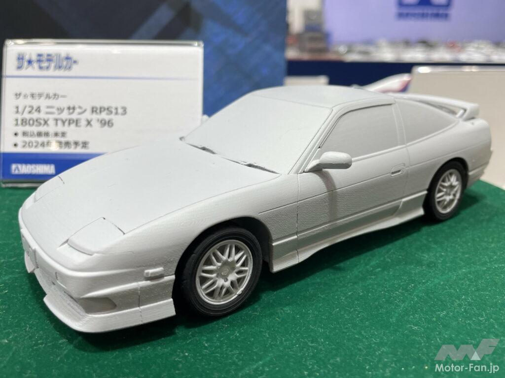 2024年発売予定だが、ごく一般的なスケールカーモデルであるアオシマの『ザ★モデルカー』シリーズでは、1/24 トヨタ ZN8 GR86 ’21と1/24 ニッサン RPS13 180SX TYPE X ’96の発売がアナウンスされた。まだ検討用の試作モデルが展示されていただけだが、両者とも車高がノーマルとローダウンの2種類から選択可能。GR86はFA24エンジンが再現される一方、180SXはヘッドライトの開閉が選択式だ。人気の高い新旧の走り屋車両だけに注目されることだろう。
