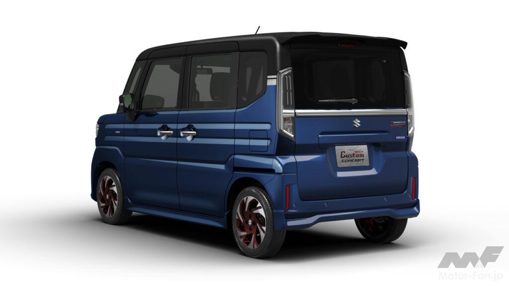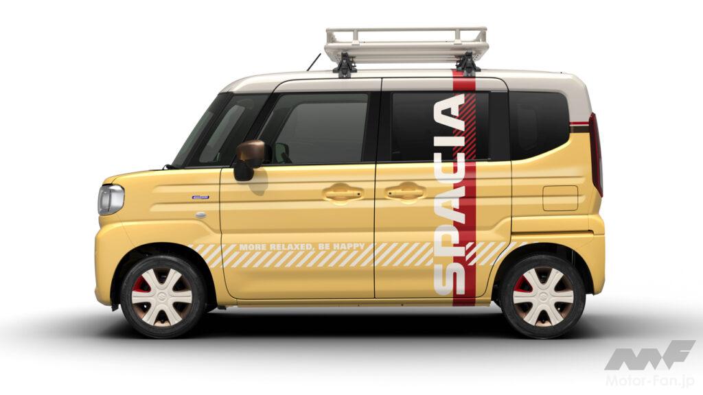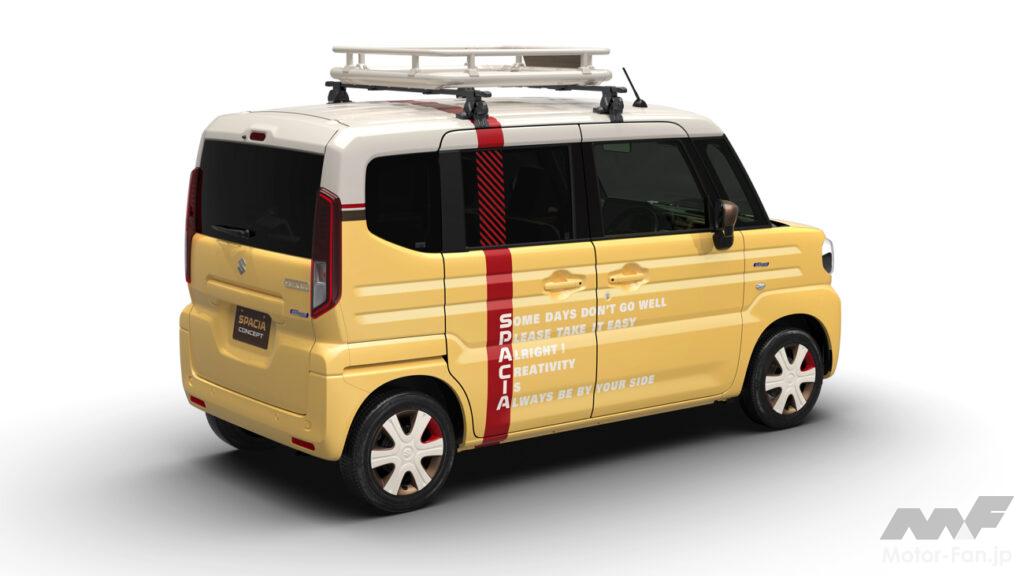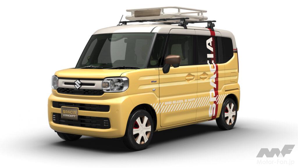スズキのスーパーハイトワゴン「スペーシア」と「スペーシアカスタム」のコンセプトモデルも展示される。現行スペーシアはスーツケースをモチーフにしたデザインが特徴だが、このコンセプトではそこからさらに進めた“コンテナ”がモチーフ。スーツケースからさらに大容量! もっと自由に、もっと使いやすくの想いが込められている。