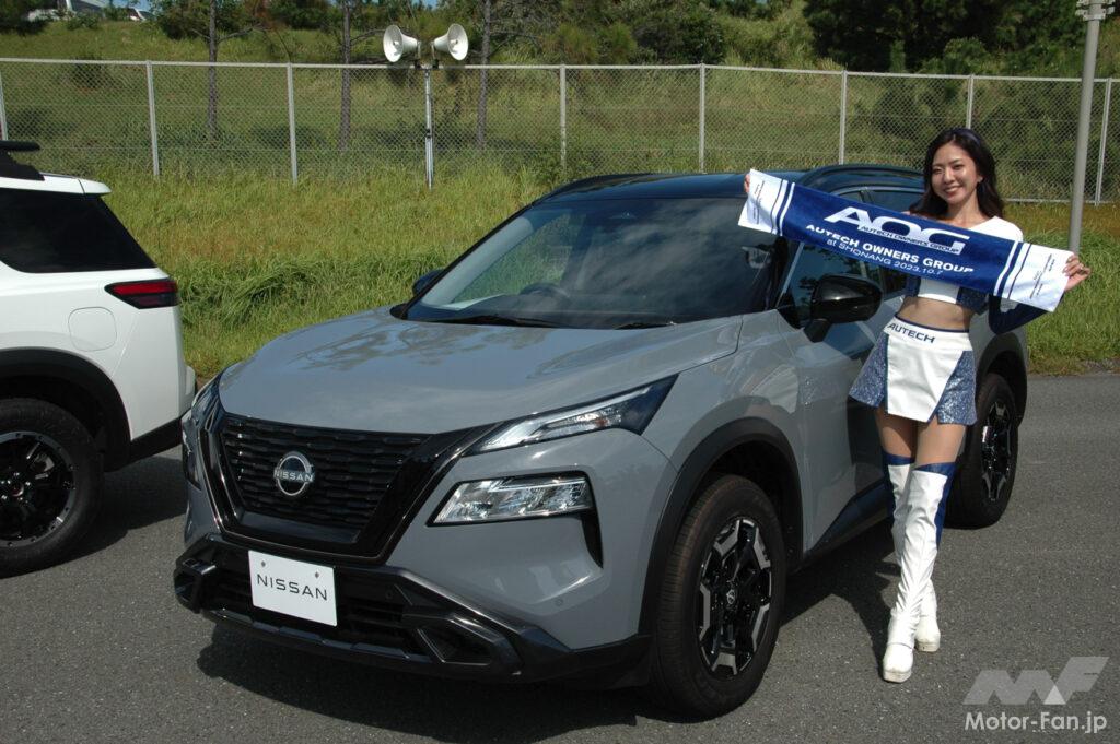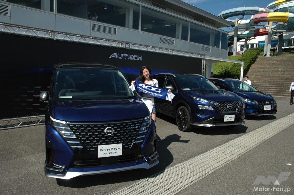 会場にはそのグリルを備えた最新のオーテックモデルが勢揃い。セレナ、エクストレイル、ノートクロスオーバーを筆頭にノート、キックス、キャラバンが展示された。