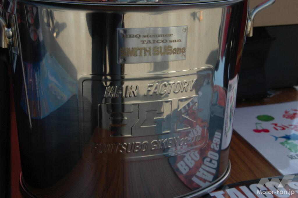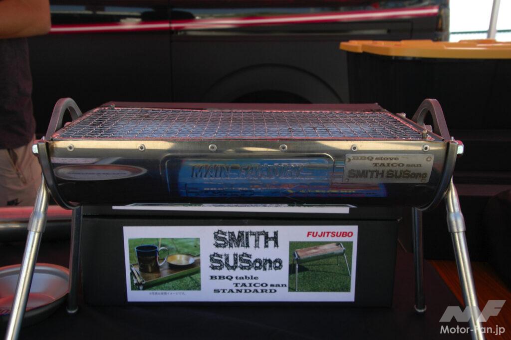 また、NISMOに加え協賛企業としてMOTUL、FUJITSUBO、HKSがブースを出展し、イベント価格で様々なアイテムを販売していた。特に目を引いたのがFUJITSUBOブースで、マフラーはもちろんだが、なんとマフラーの素材や部材を使ったアウトドアアイテムを展開していた。