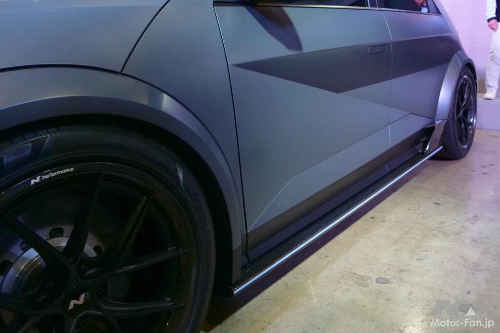 NPX1は、IONIQ 5 Nをベースとしたパフォーマンスコンセプトマシンで、Nブランド初の電気自動車専用のNパフォーマンスパーツのプロトタイプを採用。カーボン製のフロントスプリッターやリアウィングなどの空力パーツのほか、高性能ブレーキパッド、ダウンスプリングなどにより、走行性能が高められている。