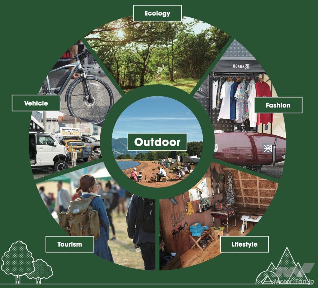会場は、おしゃれで機能的なウエア、最新キャンプギア、優れモノアイテムなどがずらりと並ぶ一大アウトドアタウンとなり、どこを見てもワクワクする空間に。親子で遊べるアクティビティやアウトドア好きな著名人のトークショーなど、楽しめるコンテンツも盛りだくさんだ。もちろんクルマ関連のブースも出展するのSUV&アウトドア好きのクルマ好きも満足できるイベントとなっている。