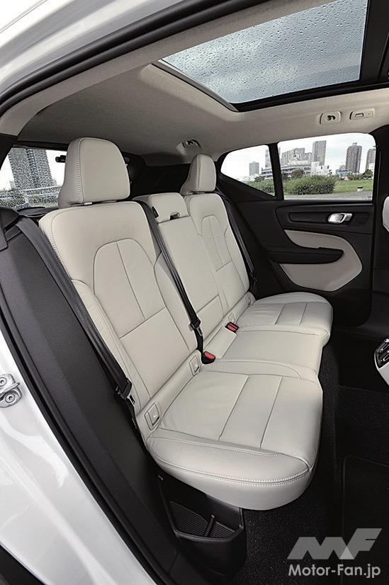 顔つきが専用となるXC40Recharge(BEV)は4WDのツインモーター、一充電走行距離484㎞(WLTCWモード)。大径20インチタイヤを履くため、荒れた路面ではロードノイズが目立つ。だが、高速道路など良路になると硬めながら低重心によるフラットな乗り心地に徹し、滑走するようなスムーズな走行性能に満足できる。そして0−1000㎞/h加速4.9秒のスポーツカー並みの加速力の持ち主でもある。