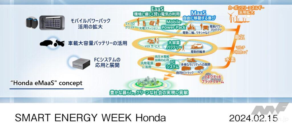 HondaはSMART GRID EXPOにおいて、「移動」と「暮らし」の可能性を広げる、Honda Mobile Power Pack e:の活用事例を紹介する。