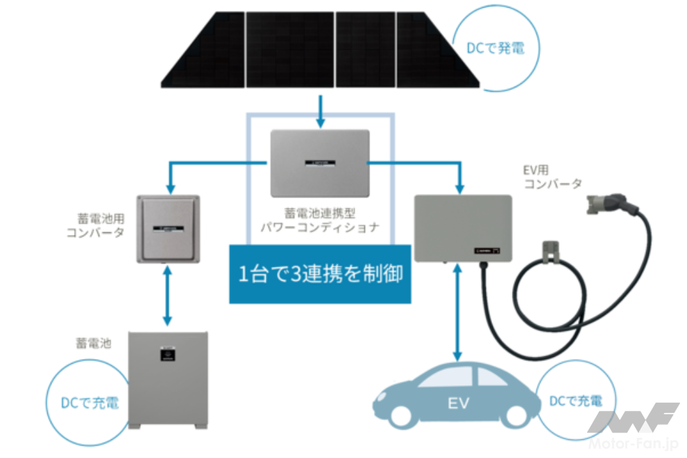 今回発売されるEV用コンバータは、業界最小・最軽量のサイズで住宅の壁に設置できるので、スペースが限られる駐車場でも設置することが可能。また、エネルギー機器を自動で賢く制御するクラウドHEMS※2サービス「COCORO ENERGY」においても、EV連携機能が新たに搭載される。台風などで気象警報が発令されると、蓄電池だけでなくEVにも充電することで停電に備えられる「気象警報連携」に対応する。